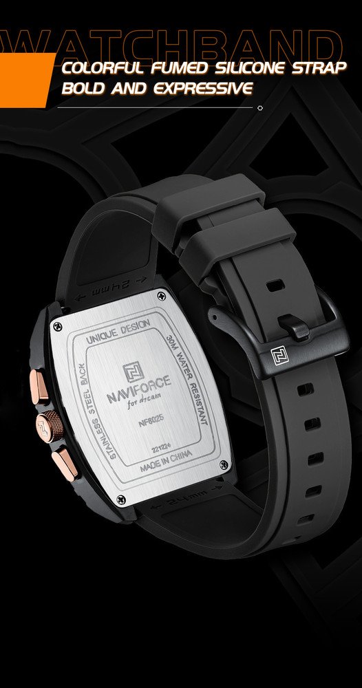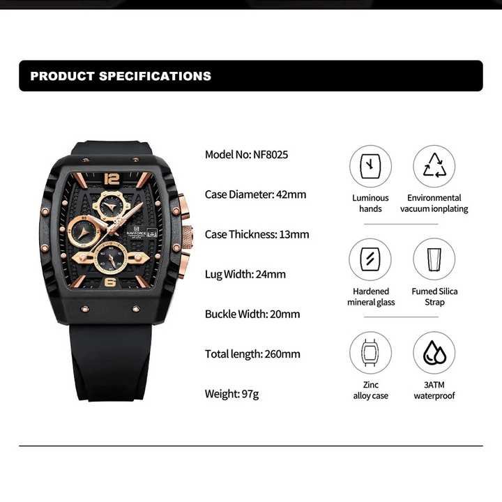 naviforce black with copper dail 8025, naviforce black with white dail 8025, naviforce blue 8025